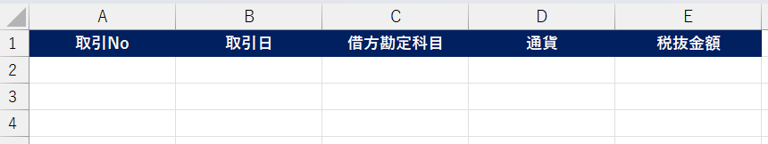 ※事前にエクセルシートに下記のようなヘッダーを作成してください。