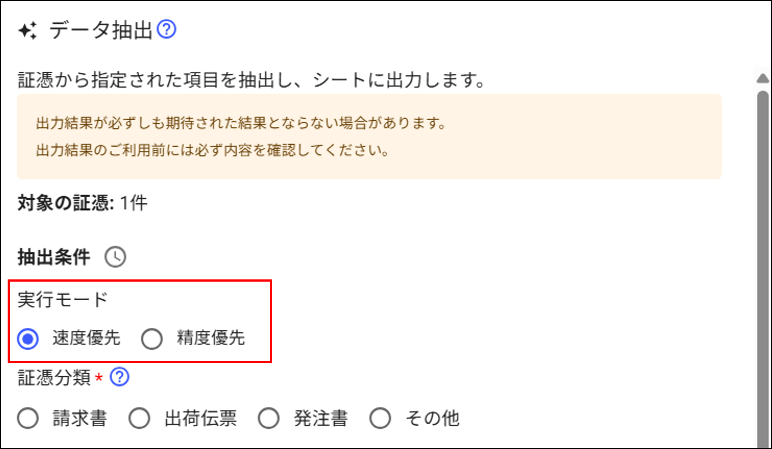 早く結果を確認したい場合に選択します - 精度優先