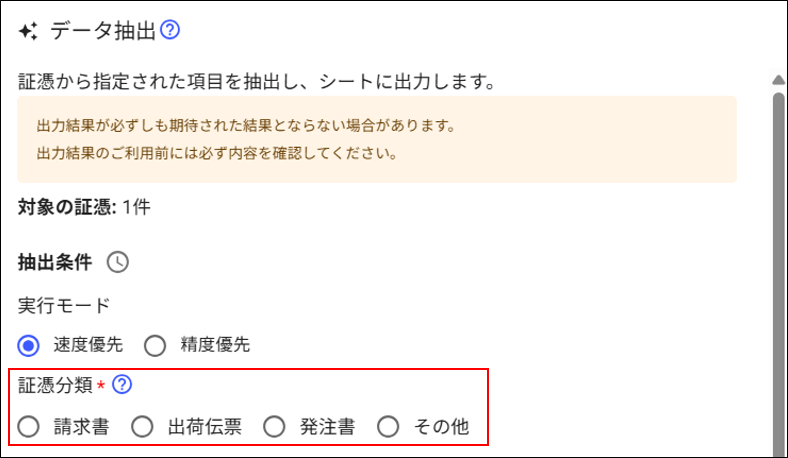 - [証憑一覧]画面を開いて、データ抽出したい証憑にチェックを入れ、[データ抽出]を選択