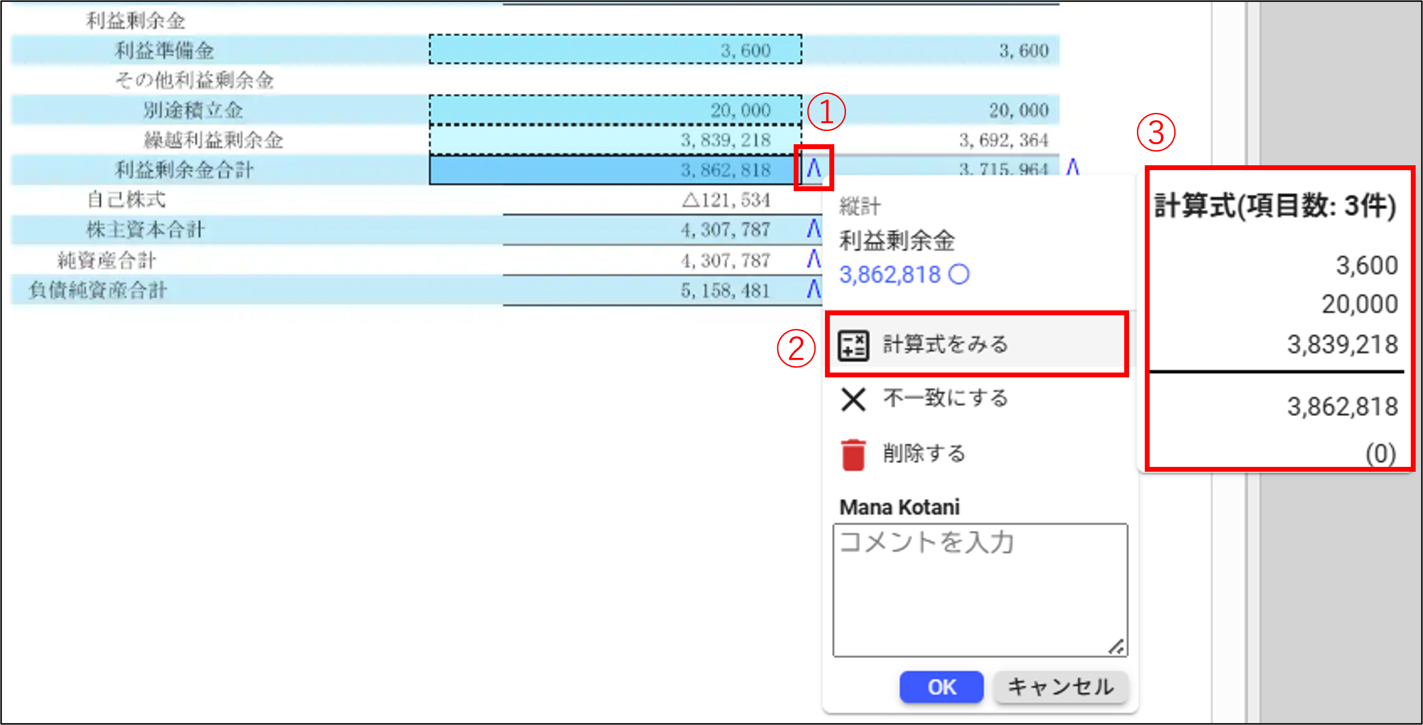 ※チェックマークをクリックし、[計算式をみる] が表示され、計算式の内容を確認できます。