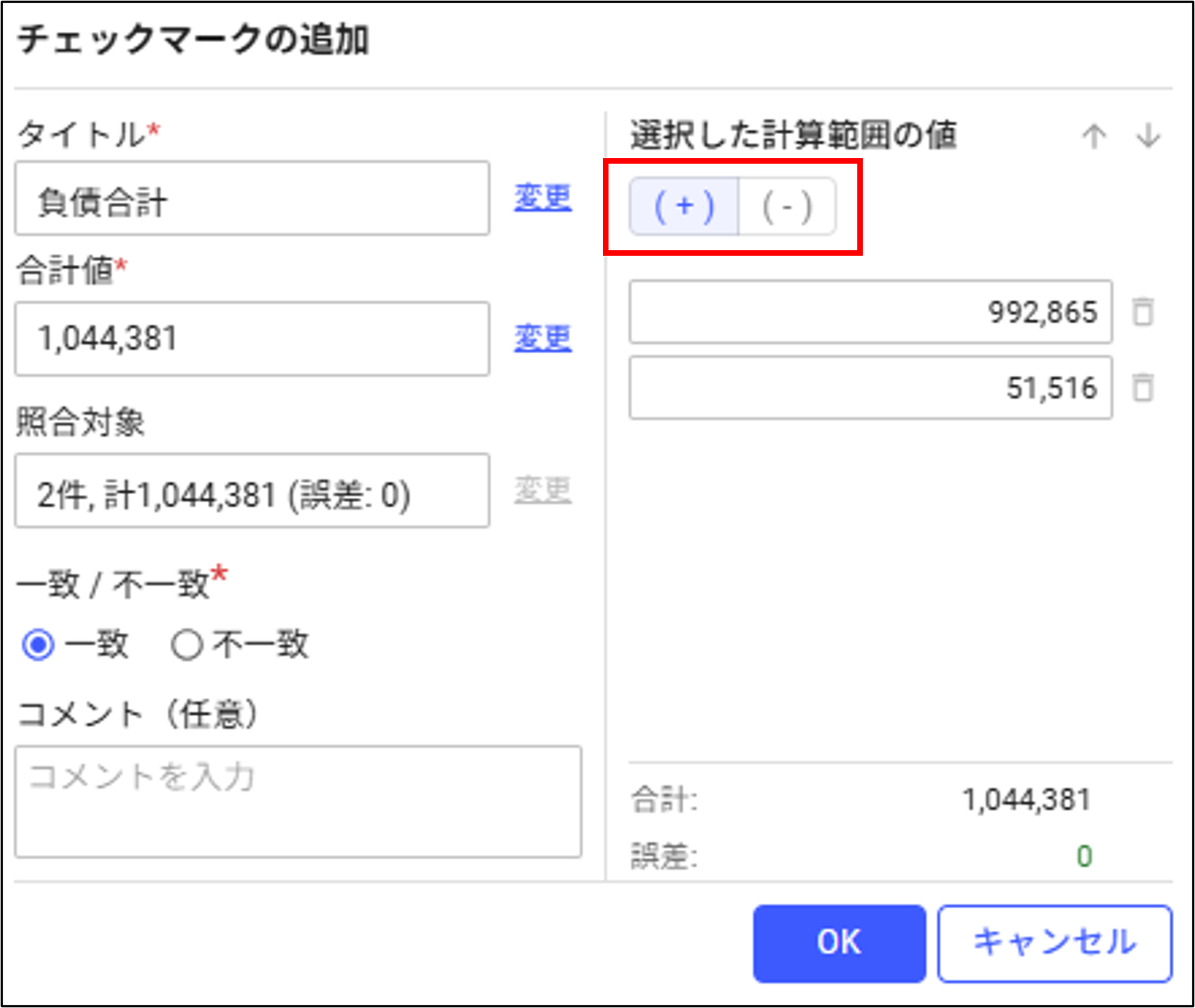 ※計算範囲の値について、足す/引く の計算方法を選択することが可能です。
