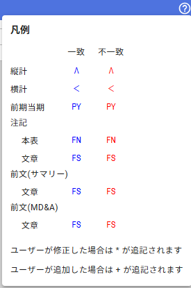 - 決算短信:業績や経営成績等の概況における科目と金額が一致するものをハイライトします。