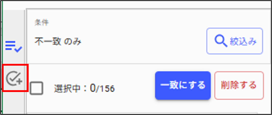 一致に変更したい項目のチェックボックスに✓を入れて、[一致にする]をクリック