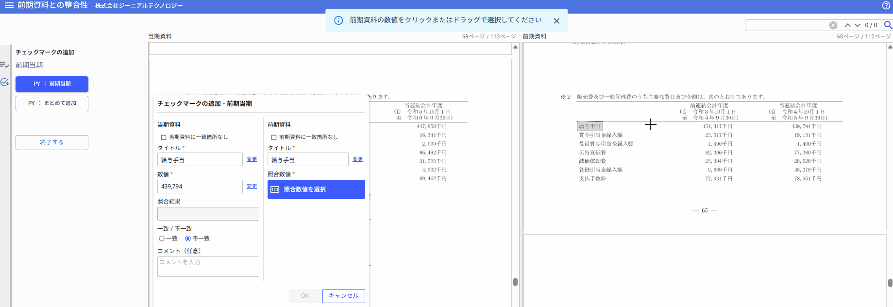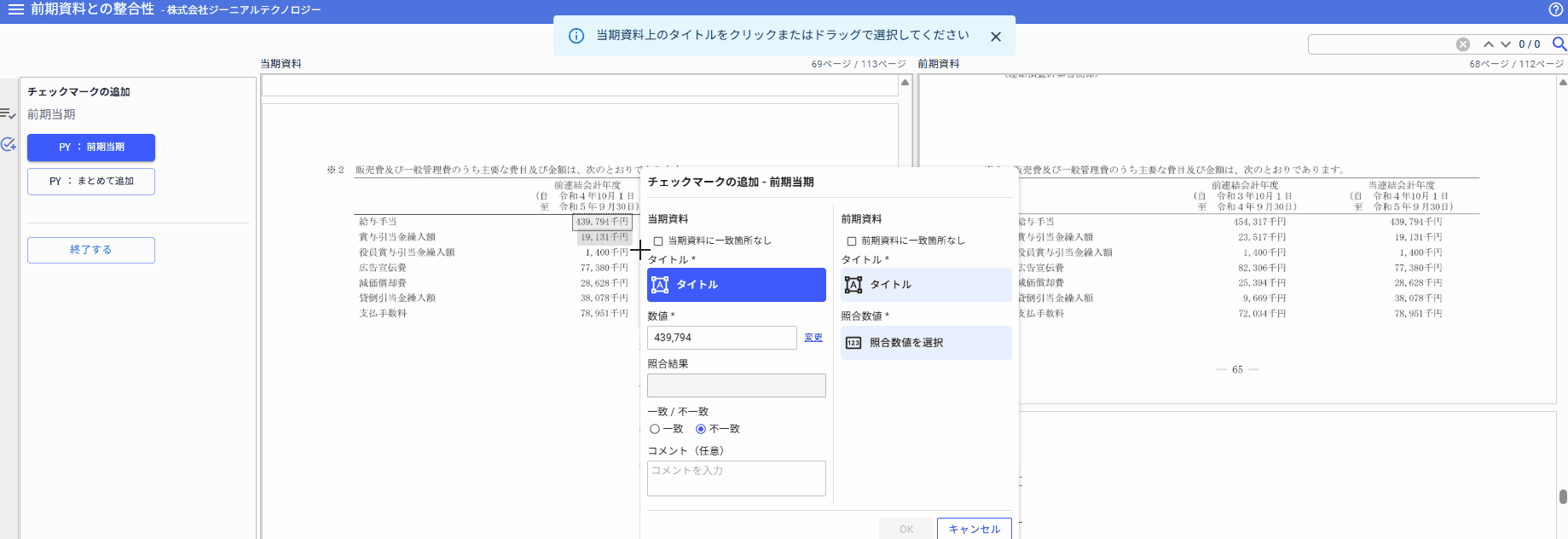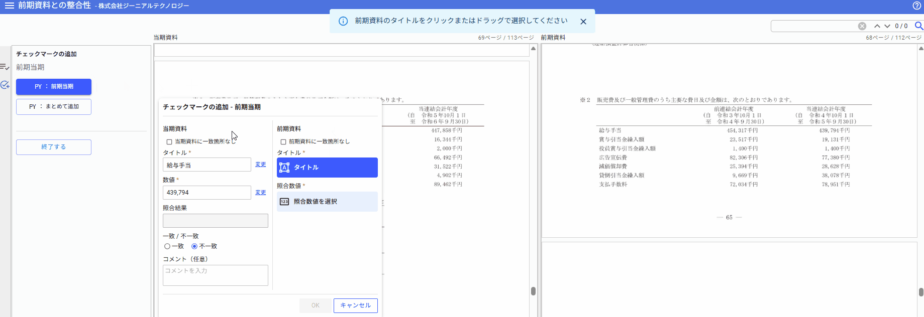 本機能は、前期資料と当期資料を比較し、データの整合性を確認するためのものです。