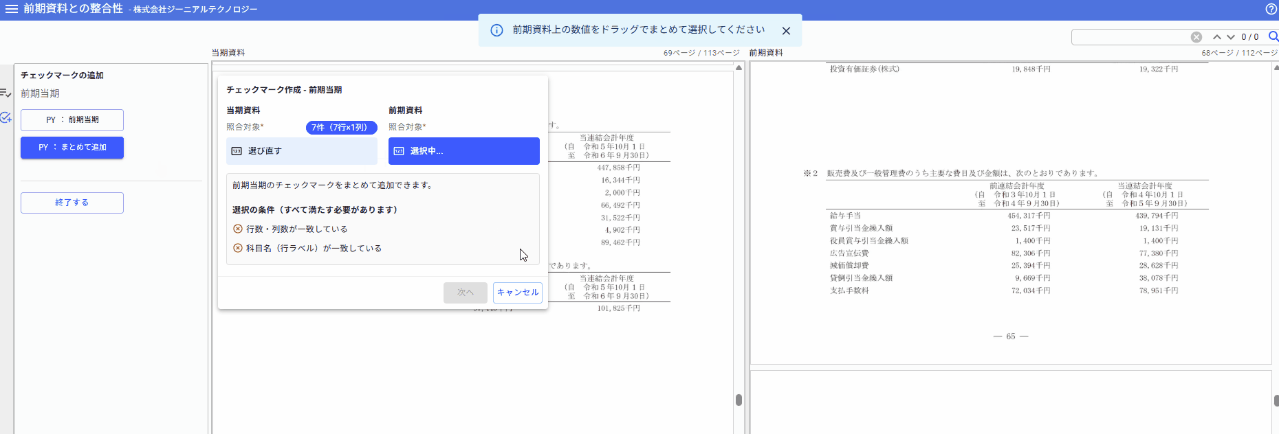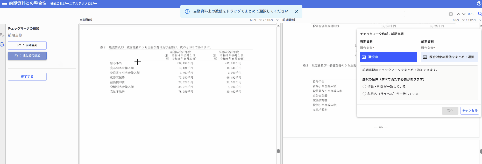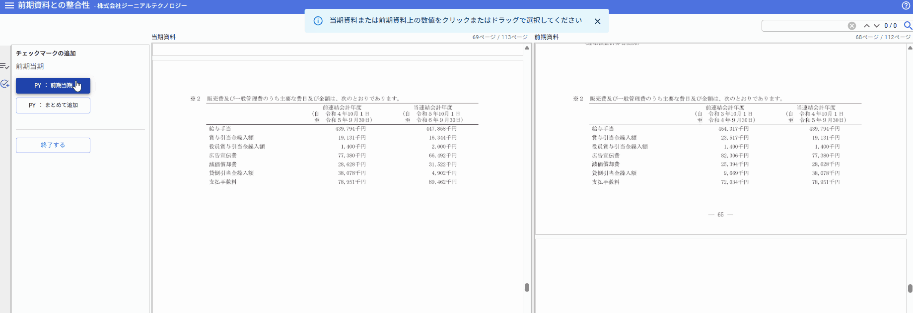 本機能は、前期資料と当期資料を比較し、データの整合性を確認するためのものです。