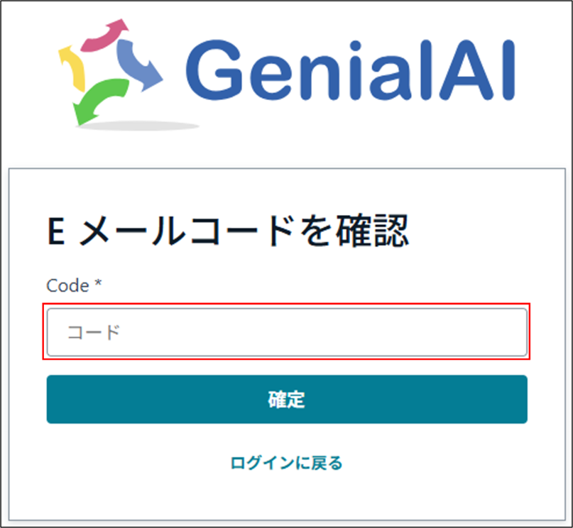 パスワードを忘れた場合は、管理者様にアカウントを削除・再作成いただくか、ジーニアルAIサポートチームまでお問い合わせください。Authenticatorアプリまたはメールに届いたワンタイムパスワードを入力